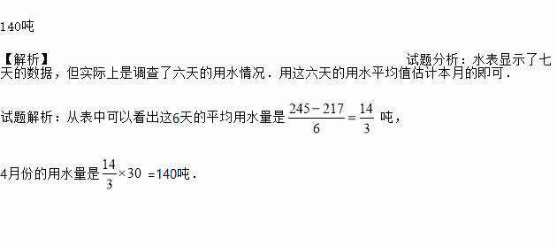 李娟同学为考察学校的用水情况,她在4 月份一周内同一时刻连续记录了水表的示数,记录结果如下表: