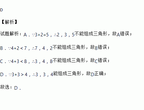 A. 2,3,5 B. 7,4,2 C. 3,4,8 D. 3,3,4