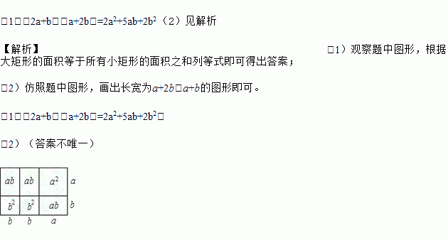 (2)试画一个几何图形,使它的面积表示:(a+b)(a+2b)=a2+3ab+2b2;