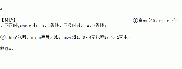 下列图形中,一次函数y = mx + n与正比例函数y = mnx(m、n为常数且mn≠0)的图象大致是( )