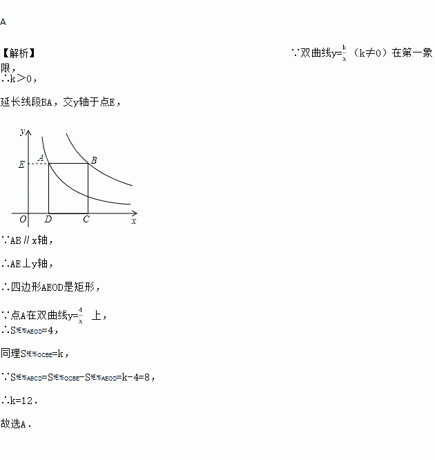 (k≠0)上,AB∥x轴,分别过点A、B向x轴作垂线,垂足分别为D、C,若矩形ABCD的面积是8,则k的值为( )