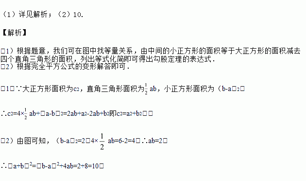 (2)如果大正方形的面积是6,小正方形的面积是2,求(a+b)2的值.