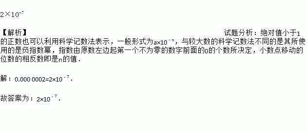 遗传物质脱氧核糖核酸(DNA)的分子直径为0.000 0002cm,用科学记数法表示为______________cm.