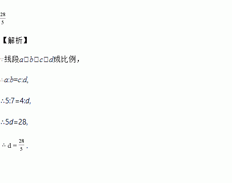 若线段a,b,c,d成比例,其中a=5cm,b=7cm,c=4cm,d=____ cm.