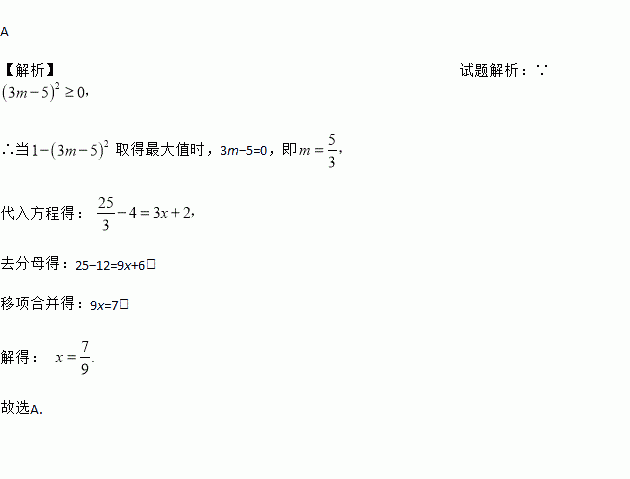 当1-(3m-5)2取得最大值时,关于x的方程5m-4=3x+2的解是( )