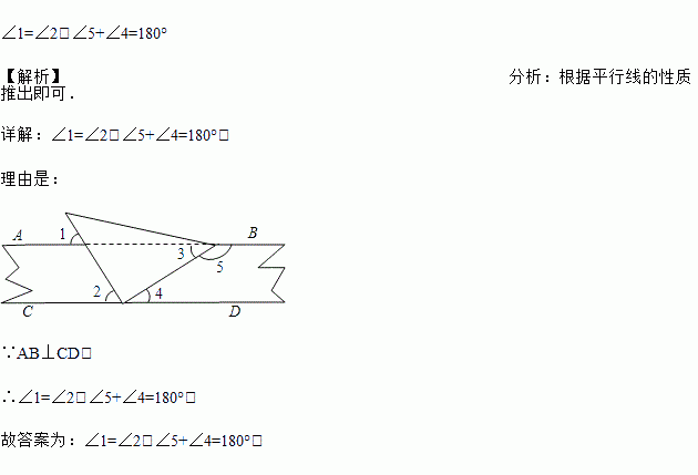 将一直角三角板与两边平行的纸条如图所示放置,请你根据图示写出正确的信息或结论,要求至少写出两个,你写出的是_____.