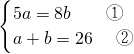 ∴由②得:a=26-b ③,