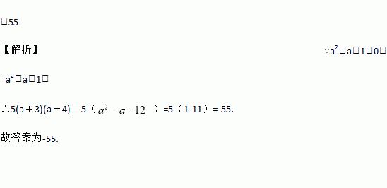 (2017·南皮县期中)如果a2-a-1=0,那么5(a+3)(a-4)=________.