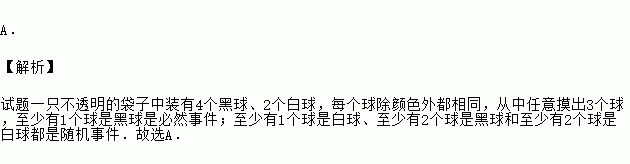 (3分)一只不透明的袋子中装有4个黑球、2个白球,每个球除颜色外都相同,从中任意摸出3个球,下列事件为必然事件的是( )