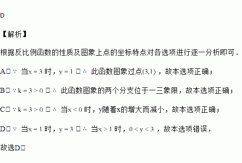 已知反比例函数,下列结论中不正确的是