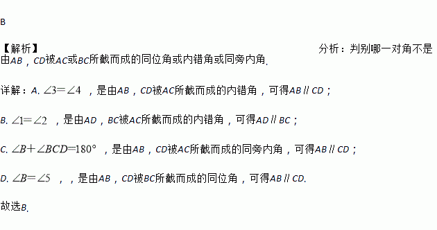 如图,由下列条件不能得到∥的是( )