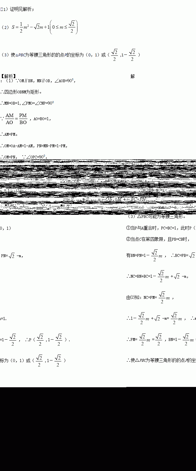 如图,以O为原点的直角坐标系中,A点的坐标为(0,1),直线x=1交x轴于点B。P为线段AB上一动点,作直线PC⊥PO,交直线x=1于点C。过P点作直线MN平行于x轴,交y轴于点M,交直线x=1于点N。