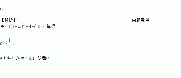 如果关于x的一元二次方程x2-2(1-m)x+m2=0有实数根α,β,则α+β的取值范围为( )