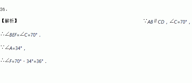 如图,AB∥CD,∠A=34°,∠C=70°,则∠F=______°.