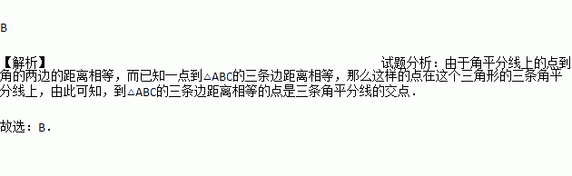 C. 三边上高的交点 D. 三边垂直平分线的交点