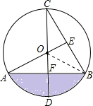 (2)连接OB,根据(1)可求出∠AOB=120°,在Rt△AOF中,求出AF,OF,然后根据S阴影=S扇形OAB-S△OAB,即可得出答案.