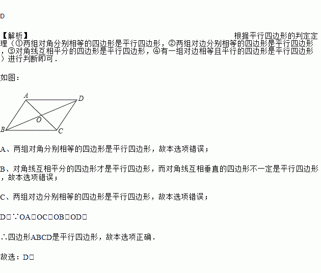 下列条件中,能判定四边形是平行四边形的是 ( )