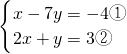 ①×2-②得,-15y=-11,解得y=