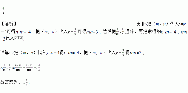 设函数y=x-4与的图象的交点坐标为(m,n),则的值为_____.