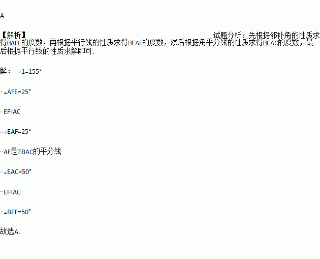 如图,AF是∠BAC的平分线,EF∥AC交AB于点E,若∠1=155°,则∠BEF的度数为( )