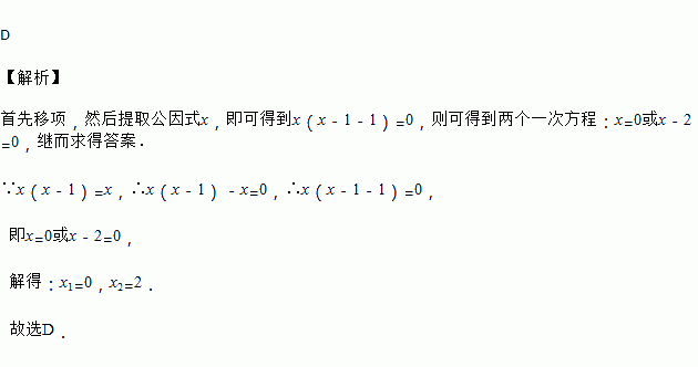 方程x(x﹣1)=x的解是( )