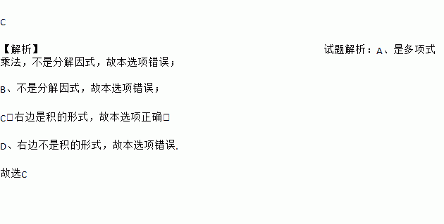 下列各式由左边到右边的变形中,是分解因式的为( )