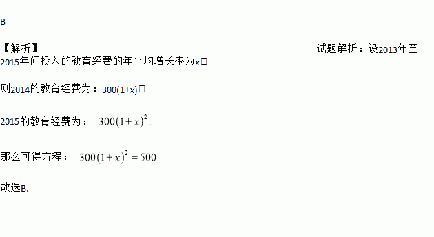 某县为发展教育事业,加强了对教育经费的投入,2015年投入了300万元,2017年投入了500万元,设2015年至2017年间投入的教育经费的年平均增长率为x,根据题意,下面所列方程正确的是( )
