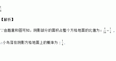 一只自由飞行的小鸟,如果随意落在如图所示的方格地面上(每个小方格形状完全相同),那么小鸟落在阴影方格地面上的概率是________.