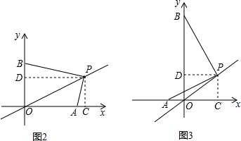 £¨¢ó£©ÓÉ£¨¢ò£©µÃ£ºPA=kPB£¬µ±k=1ʱ£¬PA=PB£¬¿ÉÖ¤µÃRt¡÷APC¡ÕRt¡÷BPD£¬Ôò¿ÉµÃPC=PD£¬¼´¿ÉµÃÖ±Ïßy=kx£¨k=1£©Æ½·ÖÒ»¡¢ÈýÏóÏ޵ļнǣ¬¼Ì¶øÇóµÃ¡ÏPOAµÄ¶ÈÊý£®