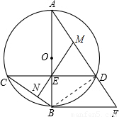 【答案】分析:(1)连接AC.欲求MN⊥BC,只需证MN∥AC即可.由于直径AB⊥CD,由垂径定理知E是CD中点,而M是AD的中点,故EM是△ACD的中位线,可得ME(即MN)∥AC,由此得证.