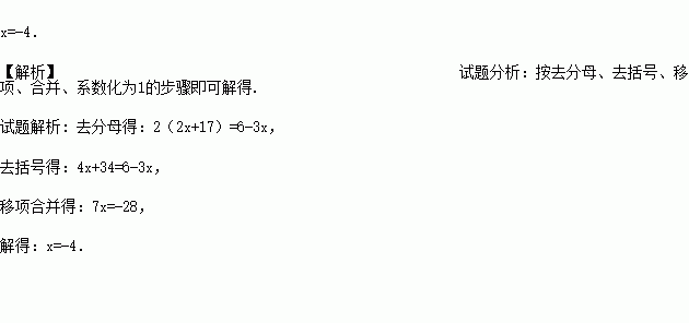 解方程: (2x+17)=1-x.