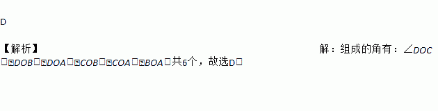 D 【解析】【解析】 组成的角有:∠DOC,∠DOB,∠DOA,∠COB,∠COA,∠BOA.共6个,故选D.