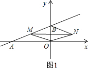 点评:本题考查了一次函数的综合运用,一次函数图象上点的坐标特点,菱形的性质.关键是根据OB为菱形的对角线,菱形的边,分类求解.