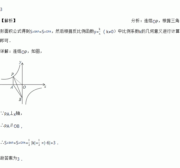 图象上有一点P,PA⊥x轴于A,点B在y轴的负半轴上,那么△PAB的面积是____.
