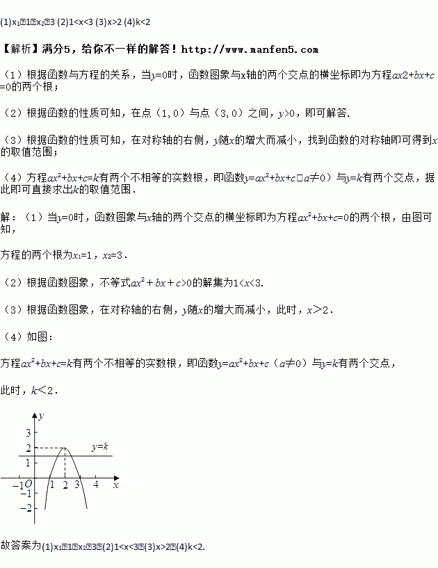 (4)若方程ax2+bx+c=k有两个不相等的实数根,则k的取值范围为________.