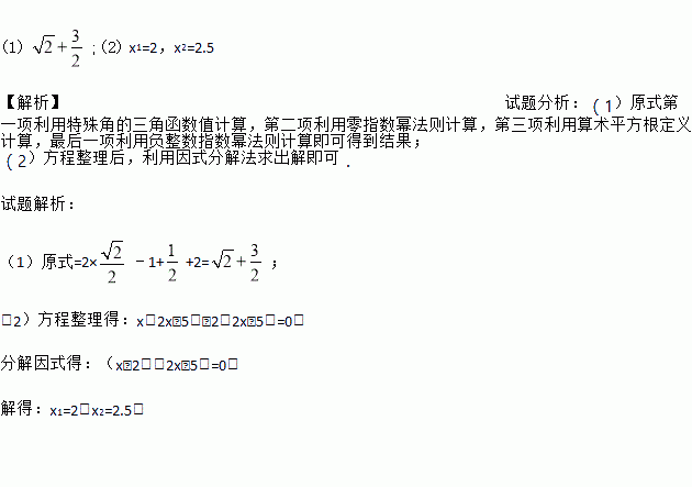 (2)解方程:x(2x﹣5)=4x﹣10.