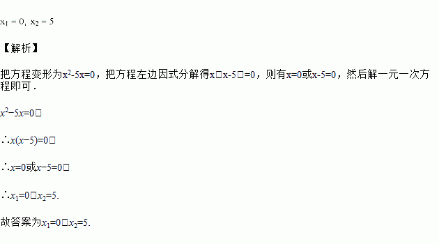 方程 x2=5x 的根是_________.