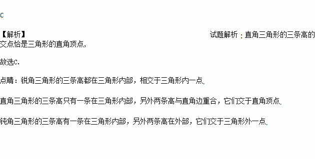 若一个三角形的三条高的交点恰是三角形的一个顶点,那么这个三角形是( )