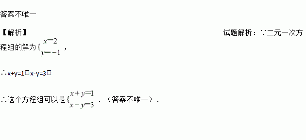 写一个解为的二元一次方程组____.