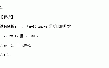 已知函数 y=(m+1)是反比例函数,则m的值为 .