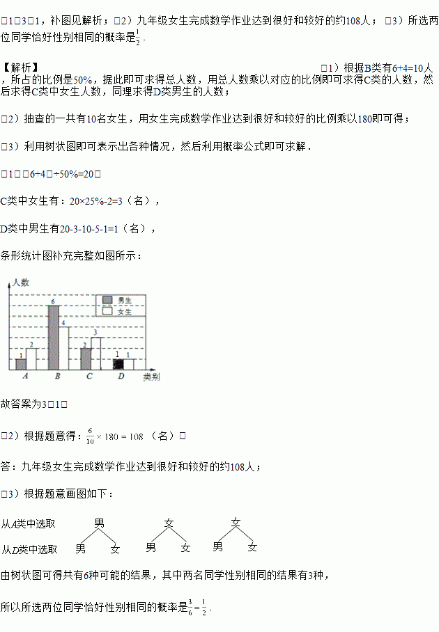 (2)Èô¸ÃУ¾ÅÄê¼¶¹²ÓÐÅ®Éú180Ãû£¬Ôò¾ÅÄê¼¶Å®ÉúÍê³ÉÊýѧ×÷Òµ´ïµ½ºÜºÃºÍ½ÏºÃµÄ´óÔ¼¶àÉÙÈË£¿