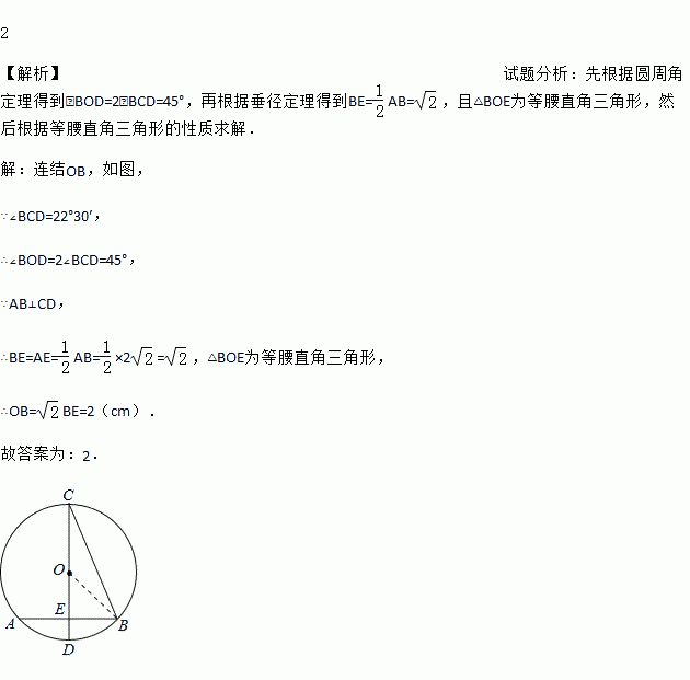 cm,∠BCD=22.5°,则⊙O的半径为_____cm.