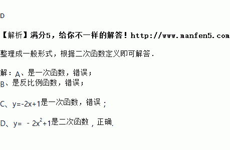 C. y=(x﹣1)2﹣x2 D. y=﹣2x2+1