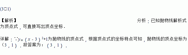 抛物线的顶点坐标是_______ .