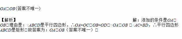 如图,?ABCD的对角线相交于点O,请你添加一个条件____________(只添加一个即可),使?ABCD是矩形.