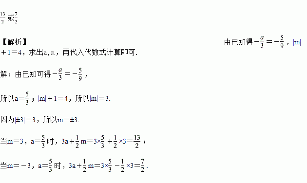 已知-x|m|y是关于x,y的单项式,且系数为-,次数是4,求代数式3a+m的值.