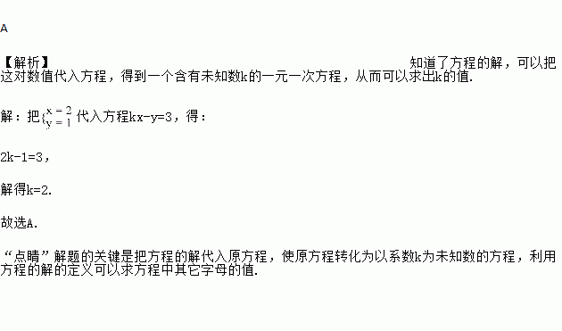 已知是关于x、y的方程4kx-3y=-1的一个解,则k的值为( )