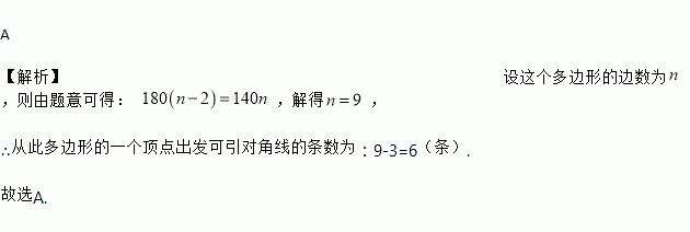 一个多边形的每一个内角都等于140°,那么从这个多边形的一个顶点出发的对角线的条数是( )