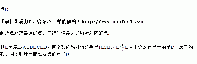 已知,数轴上表示点A、B、C、D的四个数分别是-1,2,3,-4,离原点距离最远的点是_______.