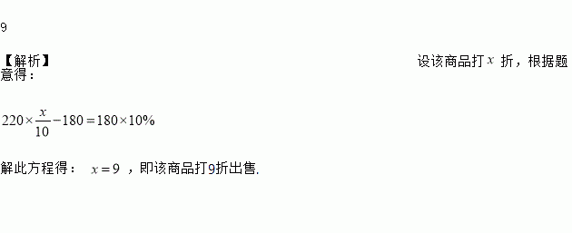某种商品的进价为180元,标价为220元,打折出售后盈利10%,则该商品打________折.